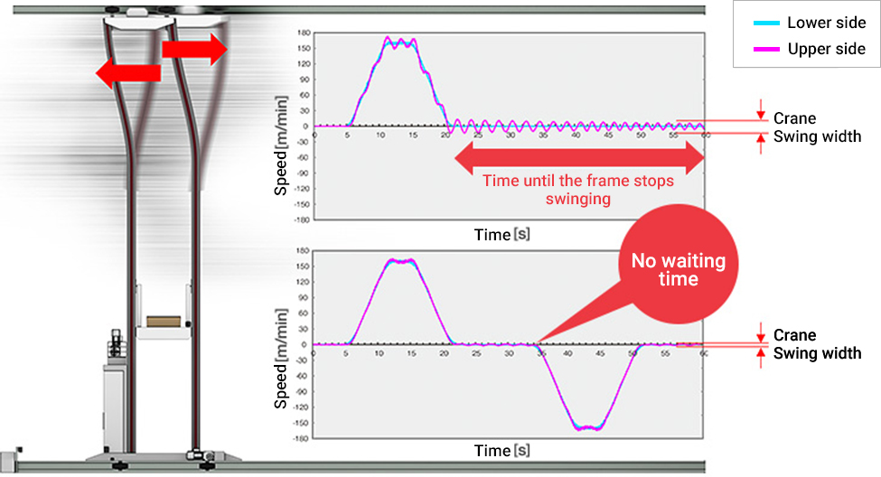 There is no waiting time for crane frame to stop swinging, thus the tact time is shortened.