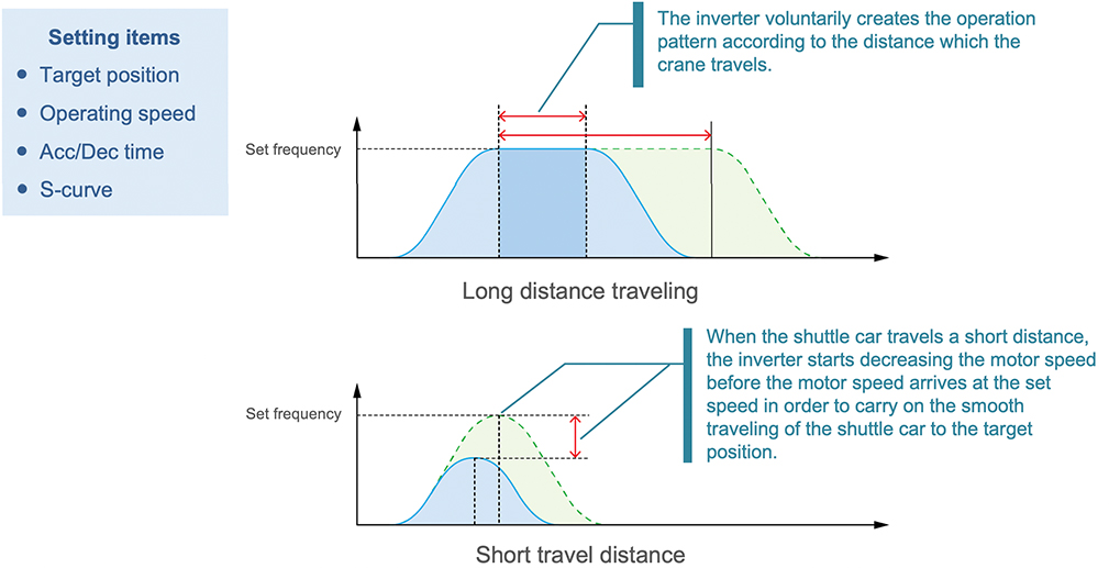 The inverter itself automatically creates the operation pattern up to the stop position.