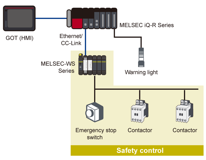 Kiểm soát an toàn có thể dễ dàng được thêm vào các bộ điều khiển lập trình hiện có (CC-Link/Ethernet)