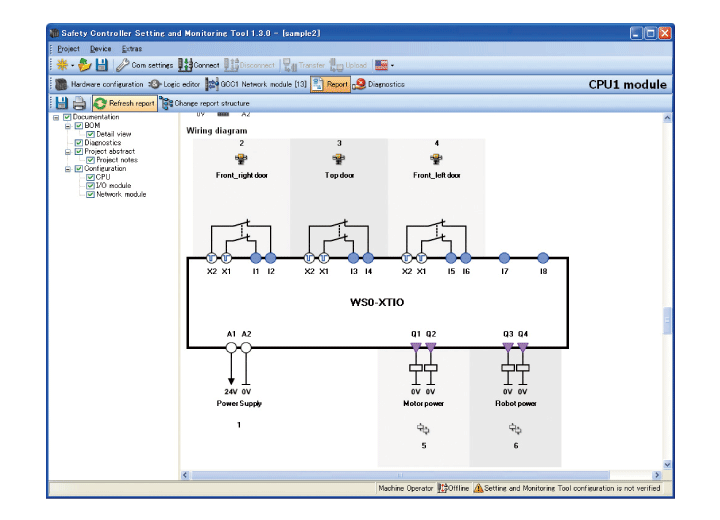 Sơ đồ đấu dây cho các mô-đun I/O có thể được tạo tự động. Chẩn đoán lỗi và các báo cáo khác có thể được tạo, in và lưu dưới dạng PDF.