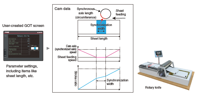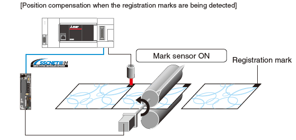 Vị trí thực tế của động cơ servo có thể được lấy dựa trên các tín hiệu từ cảm biến phát hiện các dấu đăng ký được in trên màng chuyển động tốc độ cao. Bằng cách bù sai lệch vị trí của trục dao dựa trên các tín hiệu đó từ cảm biến, màng sẽ được cắt đúng tại vị trí đã đặt.