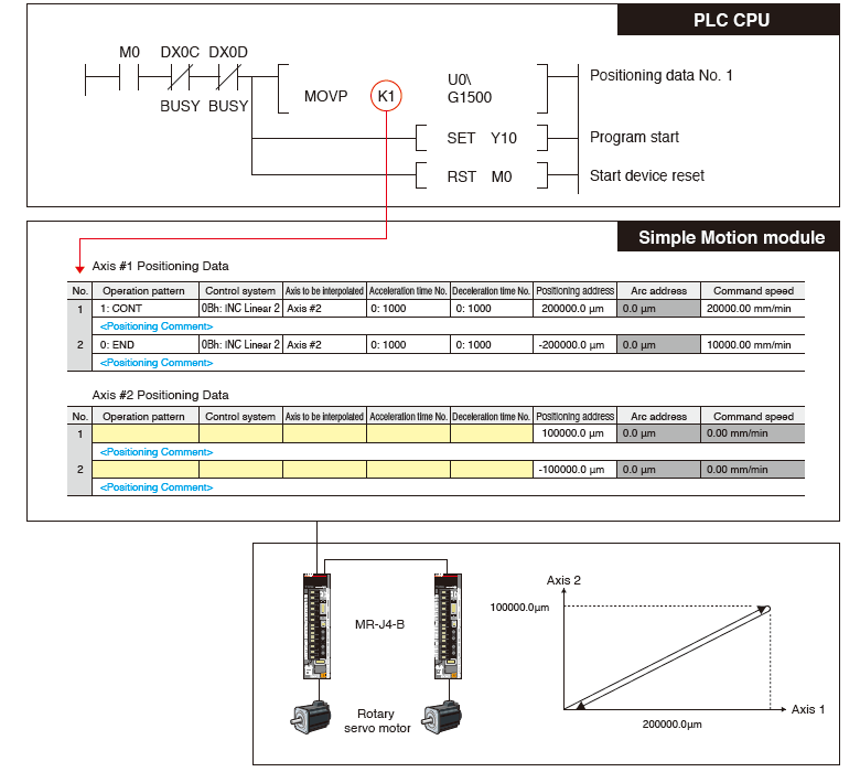 Việc bắt đầu hoạt động định vị bằng mô-đun Chuyển động đơn giản được lập trình trong CPU PLC.