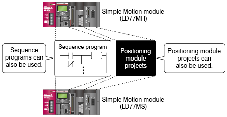 Mô-đun Chuyển động đơn giản (LD77MH) các dự án và chương trình tuần tự dễ dàng được chuyển sang mô-đun Chuyển động đơn giản (LD77MS).