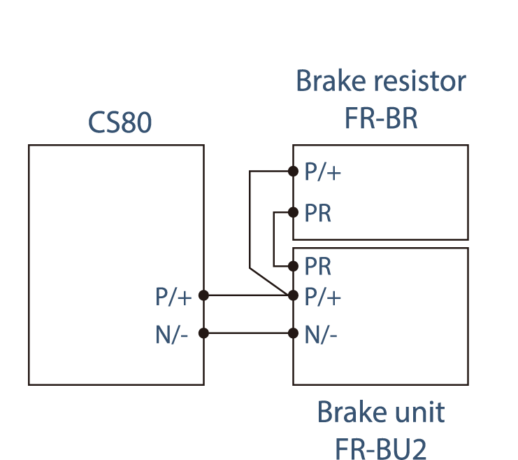 Khi sử dụng biến tần với đơn vị phanh, hãy sử dụng biến tần FR-CS84-050-60 hoặc biến tần có công suất cao hơn.