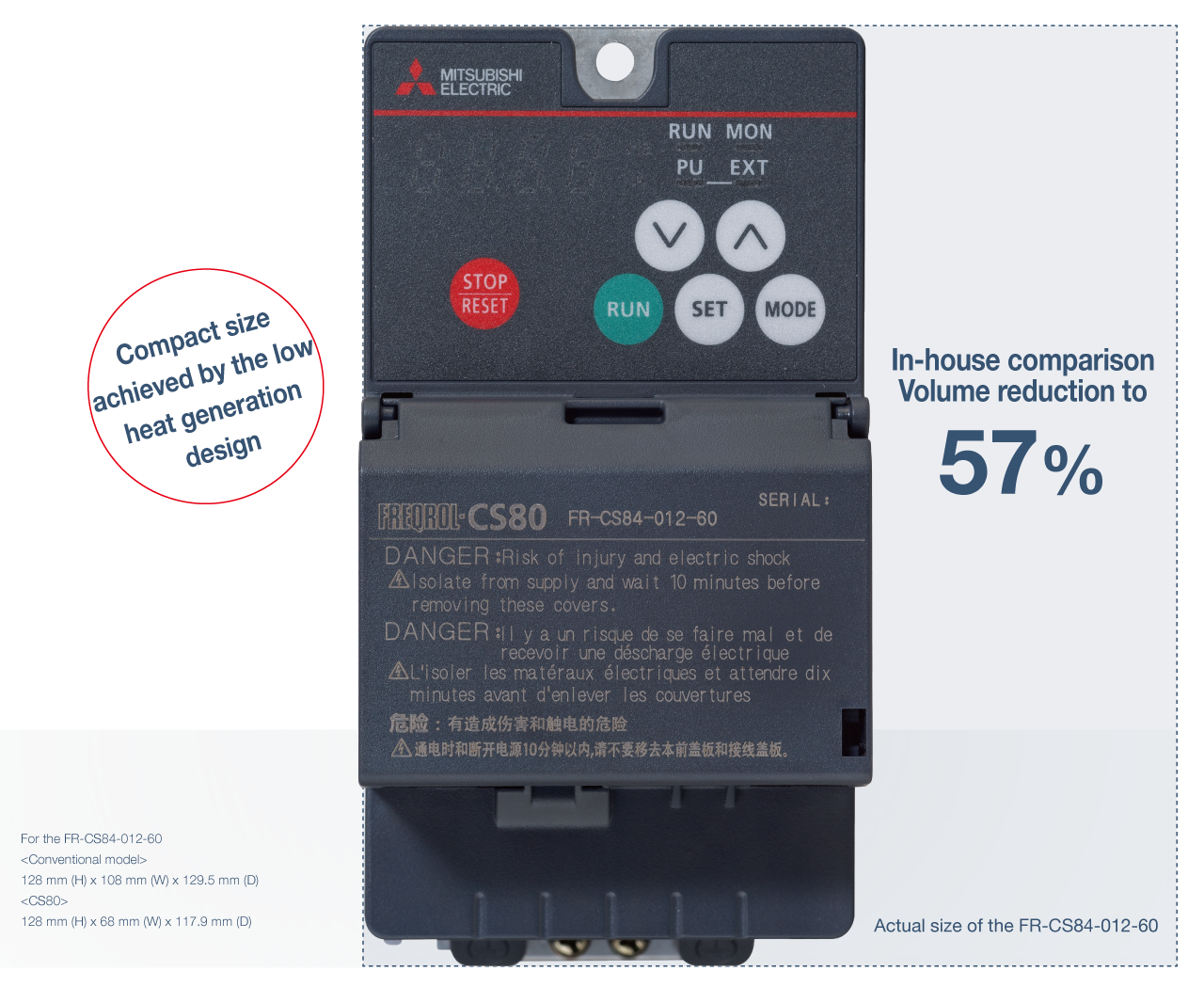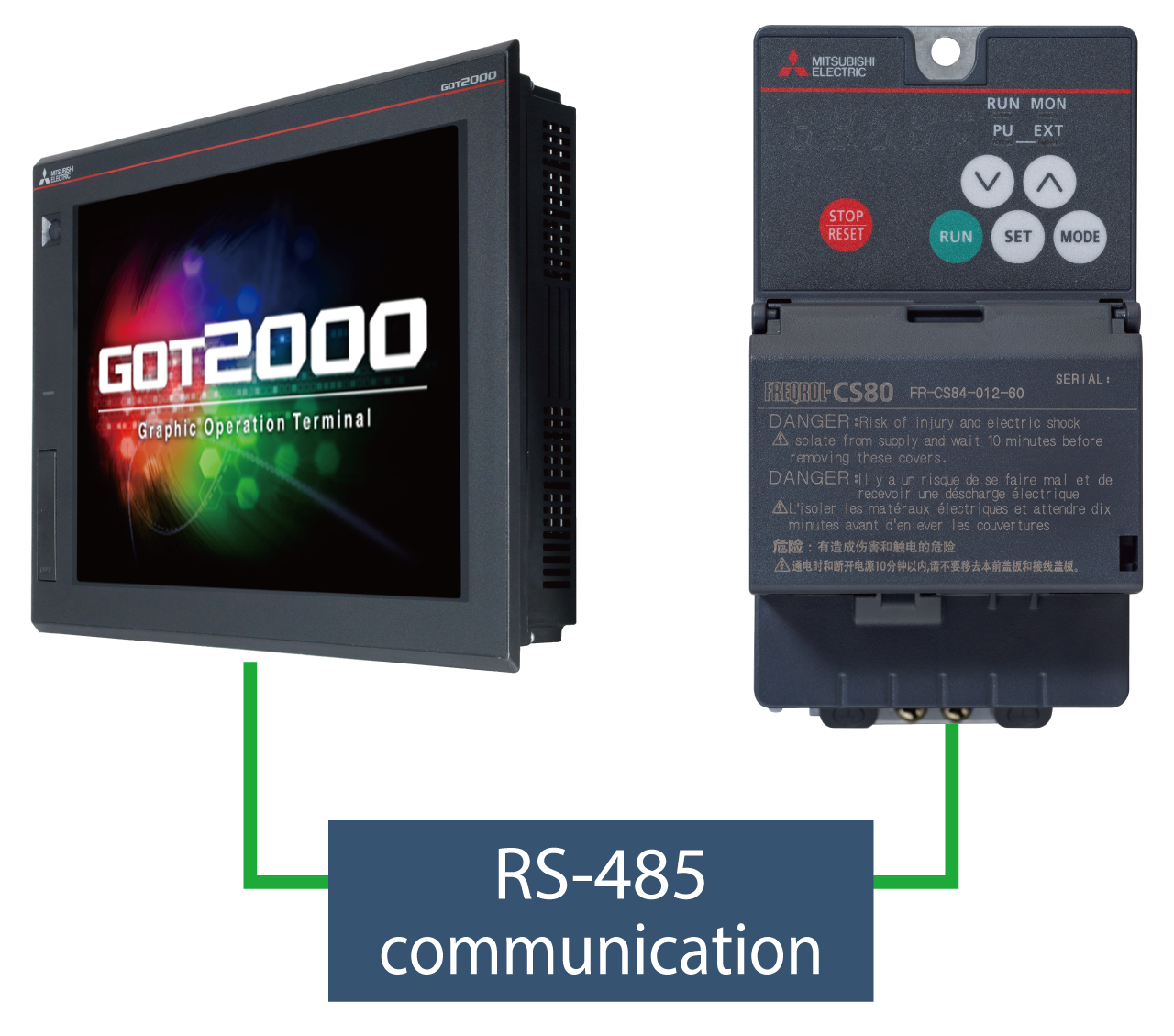 Sử dụng bộ điều khiển, biến tần có thể được điều khiển và giám sát qua mạng. Mô hình tiêu chuẩn với giao diện RS-485 (giao thức biến tần Mitsubishi, giao thức MODBUS RTU) cho phép giao tiếp với tốc độ lên đến 115,2 kbps.