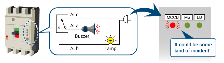 Khi máy cắt điện bị ngắt, một tín hiệu báo động sẽ được kích hoạt bằng đèn, chuông hoặc tín hiệu khác.