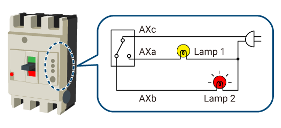 • Khi máy cắt điện đang tắt hoặc bị ngắt: Đèn 2 sáng lên (AXb đóng).