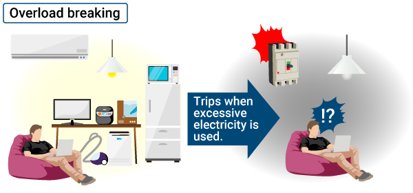 - Khi dòng điện quá tải hoặc dòng điện lớn chảy qua, các mạch thời gian hoạt động theo dòng điện tối đa, và mạch kích hoạt xuất tín hiệu kích hoạt. Điều này kích thích cuộn ngắt và kích hoạt cơ chế mở/đóng.