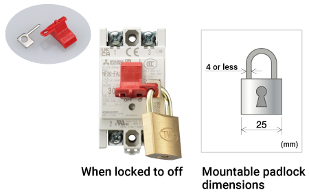Một thiết bị khóa tay cầm có thể khóa bằng ổ khóa (HL) cũng có thể được sản xuất. Thiết bị này khóa máy cắt điện ở trạng thái bật hoặc tắt, và ngay cả khi bị khóa ở trạng thái bật, máy cắt điện sẽ ngắt khi bị quá dòng.