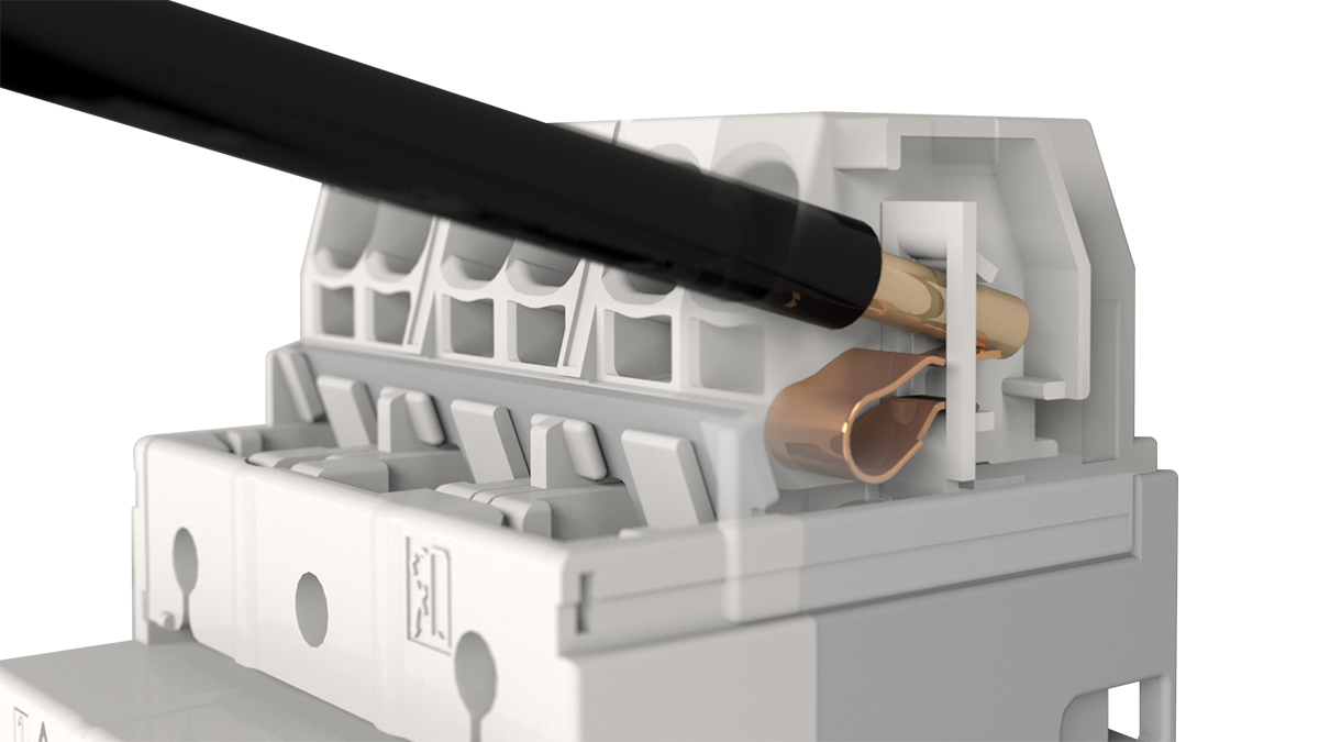 Đầu nối kiểu lò xo kẹp giữ kết nối bằng cách sử dụng áp lực lò xo để ấn dây trực tiếp vào phần dẫn điện. Dây đơn và đầu nối ferrule có thể được kết nối đơn giản bằng cách cắm vào. Ngay cả dây bện cũng có thể được kết nối đơn giản bằng cách mở lò xo bằng một công cụ, chèn dây vào và gỡ bỏ công cụ.