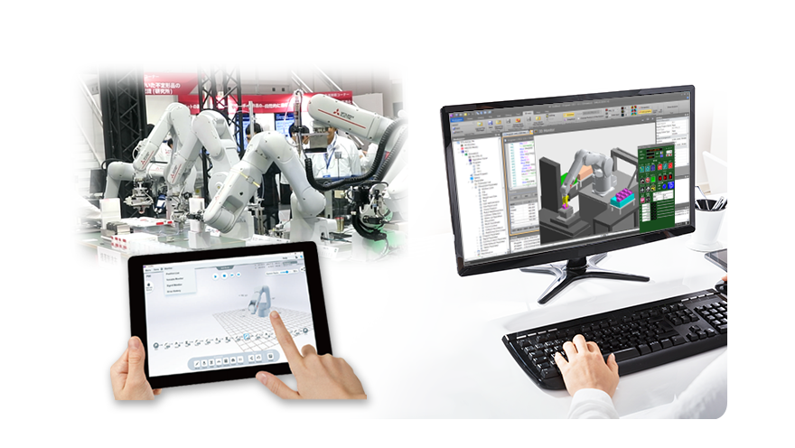 Phần mềm máy tính hỗ trợ tất cả các quy trình từ khởi động hệ thống đến gỡ lỗi và vận hành, bao gồm lập trình, xác minh phạm vi hoạt động trước và thời gian tác động trước khi giới thiệu robot, gỡ lỗi robot trước khi khởi động.