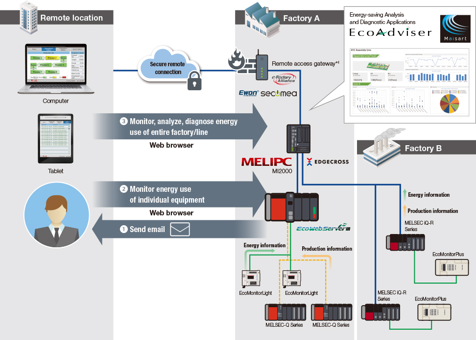 (3) Phần mềm hỗ trợ tiết kiệm năng lượng “EcoAdviser” sẽ phân tích mức sử dụng năng lượng của toàn bộ nhà máy hoặc dây chuyền sản xuất và đưa ra kết quả chẩn đoán cho người dùng.