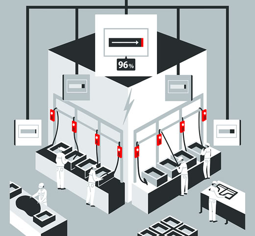Trong quá khứ, mức tiêu thụ điện năng cao do việc vận hành máy móc liên tục không cần thiết hoặc sử dụng không hiệu quả. Với sự ra đời của biến tần, giờ đây có thể điều chỉnh mức tiêu thụ điện năng đến một mức phù hợp với nhu cầu vận hành. Trong ví dụ về xưởng dập, giải pháp của chúng tôi đã đạt được mức giảm năng lượng 96%. Thêm vào đó, trong năm thứ năm kể từ khi bắt đầu dự án, chúng tôi đã thành công trong việc giảm chi phí bằng cách giảm mức tiêu thụ điện hàng năm xuống 380.000 đơn vị (khoảng 3 triệu INR).