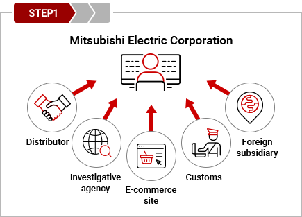 The Mitsubishi Electric Group's brand protection strategy is guided by the core policy of achieving effective and fundamental solutions through macro and micro measures. In addition to addressing the sellers, as well as the importers and exporters discovered at market endpoints, the Group also analyzes the composition of the counterfeit supply networks based on findings and the examination of market-wide information and data. The Mitsubishi Electric Group strives to enhance the quality of its brand protection activities by continuously repeating the process of eliminating the infringing parties based on collected information and subsequent monitoring.
