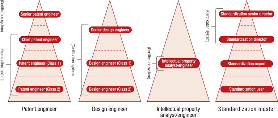 The Group has established four qualifications according to responsibilities, along with an educational system tailored to those qualifications. Additionally, the Group has established a certification system for qualifying intellectual property analysts.