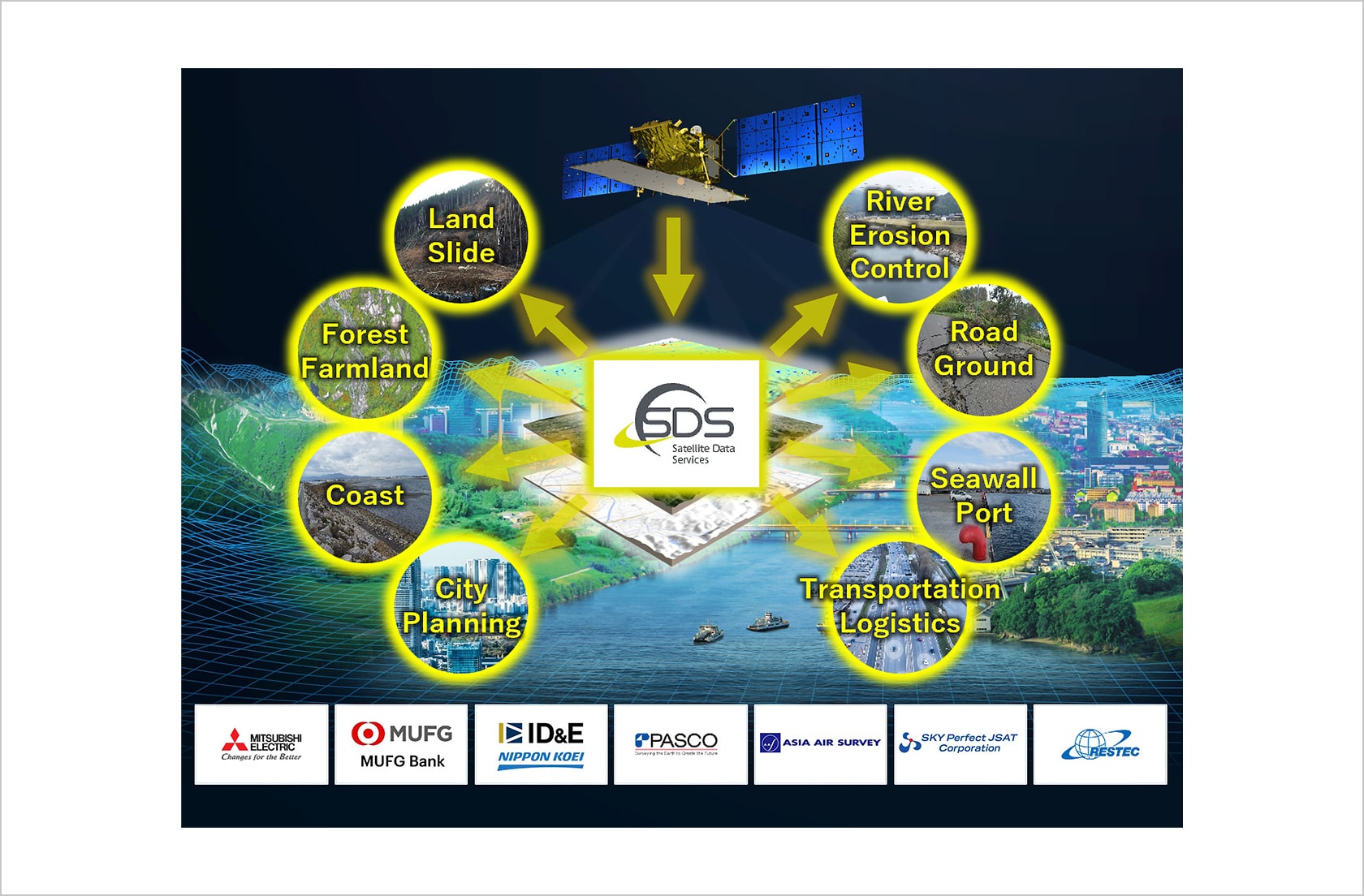 In June 2021, Mitsubishi Electric jointly established Satellite Data Services Co., Ltd. (SDS) with ID&E Holdings, Pasco Corporation, Asia Air Survey Co., Ltd., SKY Perfect JSAT Holdings Inc, and Remote Sensing Technology Center of Japan (RESTEC). In February 2024, MUFG Bank, Ltd. Joined in investing in SDS shares. SDS is a start-up to promote the utilization of satellite data, by providing a wide range of users with satellite data analysis information. Mitsubishi Electric and SDS jointly applied for one of Japan’s Cabinet Office’s BRIDGE programs*3, the research and development call for "Construction, Operation, Demonstration, and Commercialization of the Japanese Version of the Disaster Charter*4," and were selected. In April 2024, SDS also applied with a smaller SAR satellite start-up, iQPS Inc., and other partners for an auxiliary project of the Small Business Innovation Research (SBIR) scheme implemented by Japan’s Ministry of Economy, Trade and Industry (METI) and was selected. The project will receive a grant amounting up to ¥330 million, aiming to achieve the establishment of flooding/landside damage support systems and road inspection support systems that utilize SAR satellite data by March 2028.