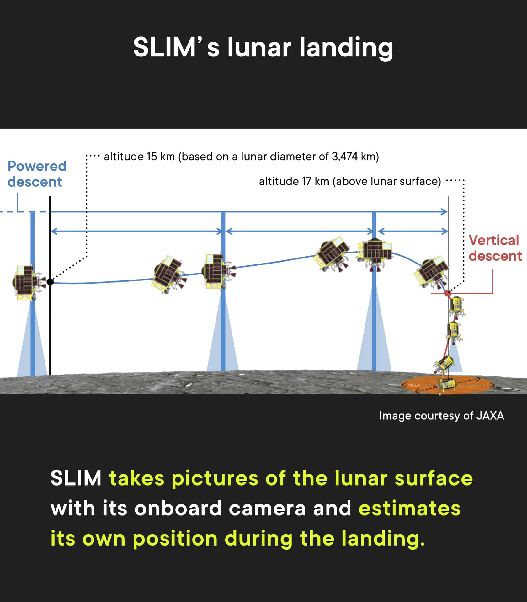 Knowing its position, SLIM then needs to perform the calculations on its own, flying while correcting its trajectory, in order to reach the target landing site. This "autonomous navigation guidance" system is another important technology.