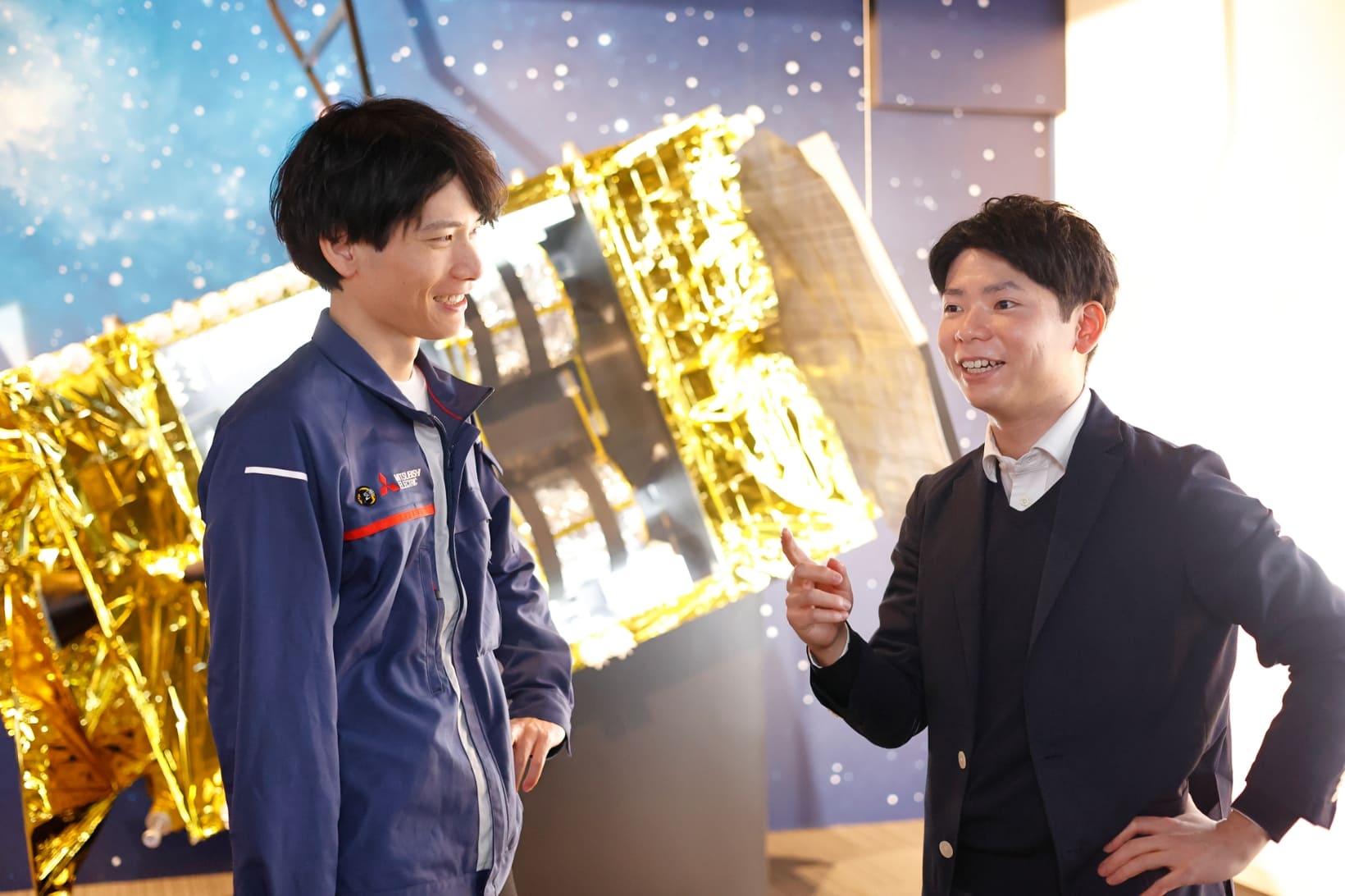 Inoue: When we were distributing posters on Tanegashima Island and filming the SLIM launch at the tour site, members of the public from all over the country said, "We support you!" We received words of support from people saying, "Mitsubishi Electric is indispensable to Japan's space industry." Knowing that so many people knew about our space business and were supporting us made me feel proud, because of the history of Mitsubishi Electric's space business that we had cultivated up to that very day. At the same time, I wanted to bring that voice to the people and engineers on the ground, like Toku. Because the voices of the general public would not have been heard otherwise.
