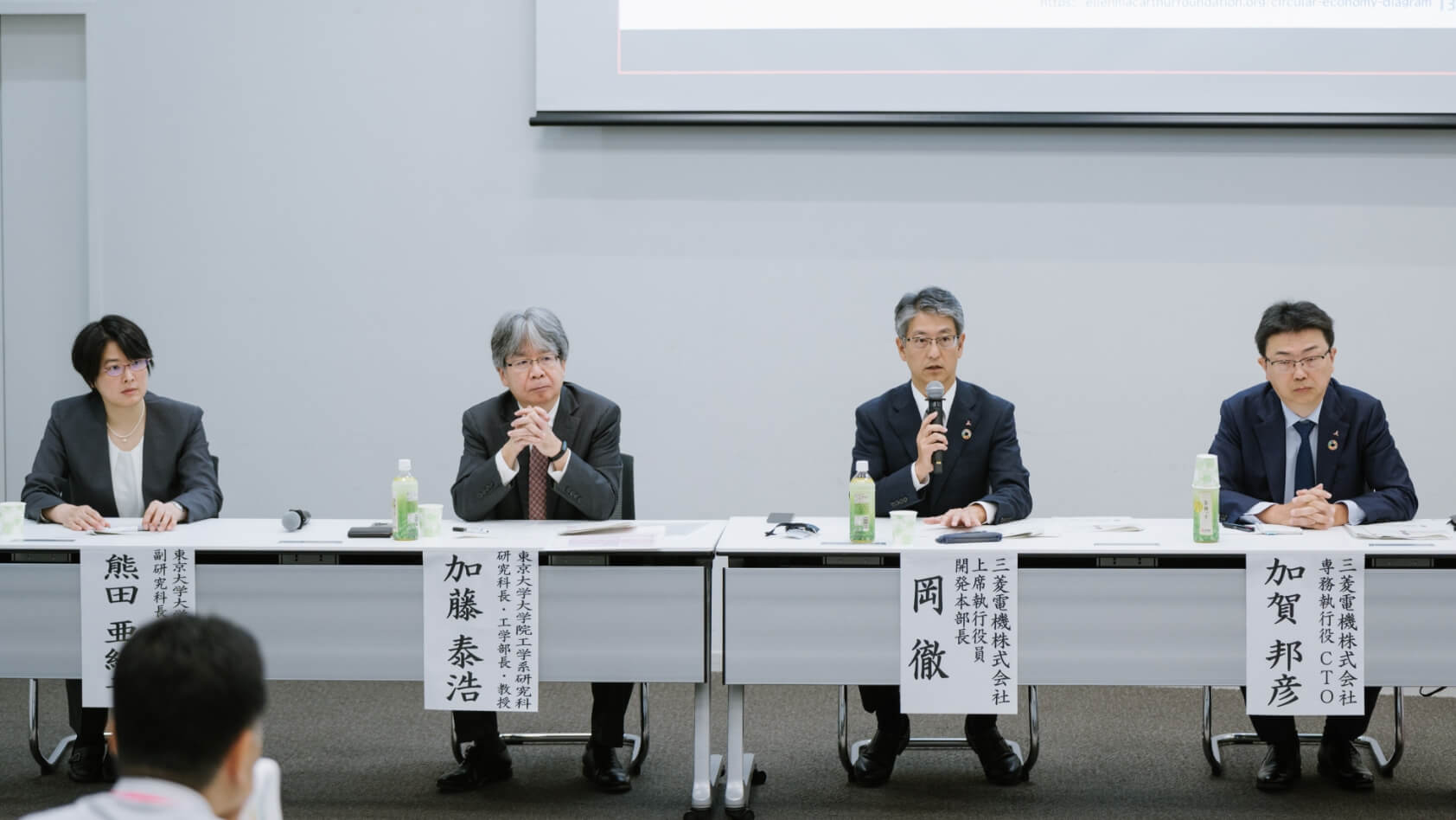 Speakers left to right: Kunihiko Kaga (Representative Executive Officers, CTO, Mitsubishi Electric), Toru Oka (Senior Executive Officer, Vice President of Corporate Research and Development Group, Mitsubishi Electric), Yasuhiro Kato (Dean and Professor, School Of Engineering, The University of Tokyo), Akiko Kumada (Vice Dean and Professor, School Of Engineering, The University of Tokyo)