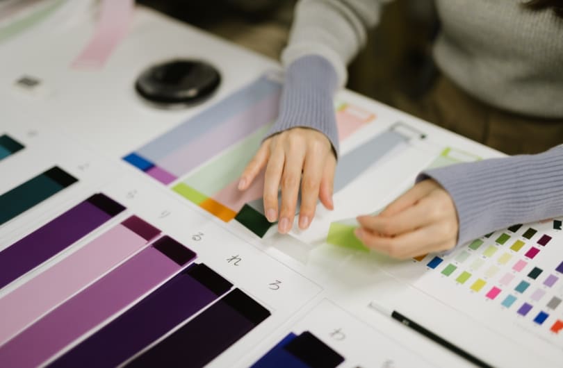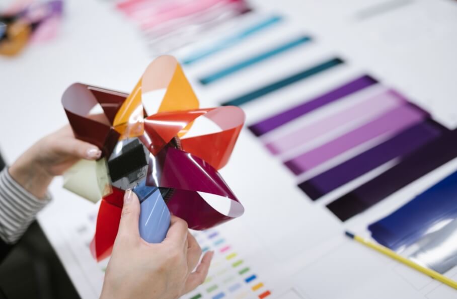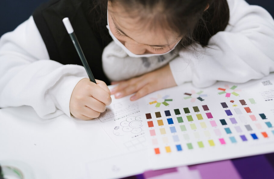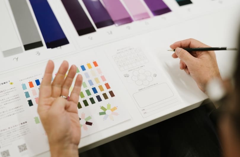 Taking film sheets of the colors assigned to the 50 hiragana syllables, according to the "Mahou no Kotoba" (magic word).