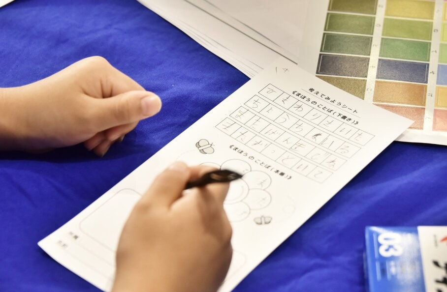This event seemed to be a good opportunity for participants to think about the future. In order to summarize their "message to their future selves" in seven simple letters, the participants had to face their present selves and who they want to be in the future. The participants struggled with the seven hiragana letters, sometimes with smiles on their faces, and sometimes seriously, penning their thoughts as they went along. It was truly fantastic to see the flowers "bloom" with such serious thoughts in them, and witness a scene unique to an art project spread out before our eyes.