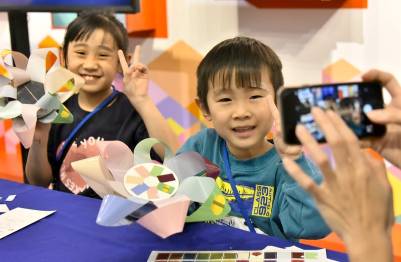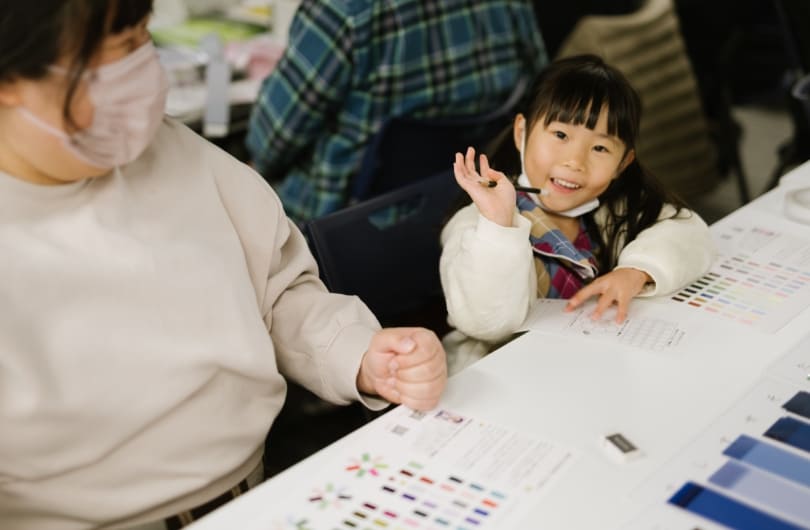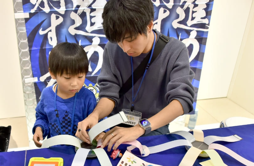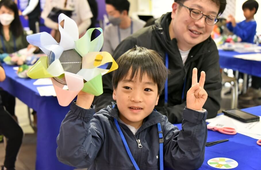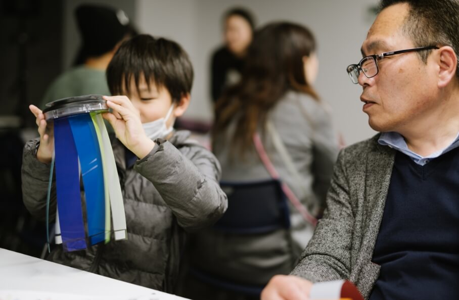 On Saturday, December 16, employees of both companies and members of the general public gathered at "Imabari Satoyama Stadium" and "METoA Ginza", respectively, for a workshop to create "glowing flowers" with a "message to your future self" written as a wish. Many families with children participated in the workshop, making their own "glowing ohana" under the guidance of Mr. Kyota Takahashi, connecting the two venues online. The "glowing ohana" created by the participants were displayed at both the Imabari and Ginza venues (the exhibition was open until the end of January).