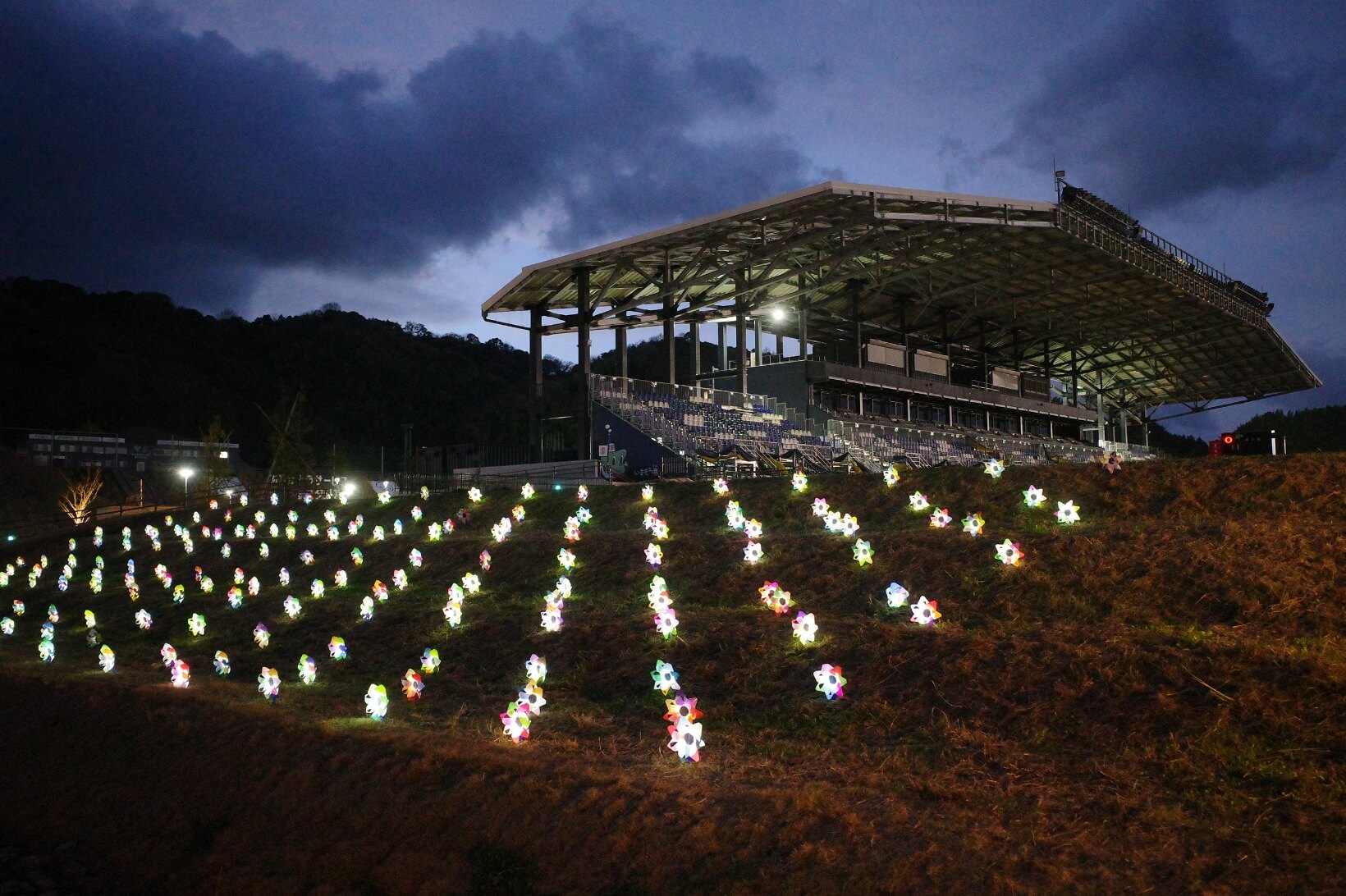 As the first of the two companies' co-creation activities, the art project "Purpose Project x aiueohana" was simultaneously held on Saturday, December 16, 2023, at Imabari Satoyama Stadium in Imabari, Ehime Prefecture, and at the Mitsubishi Electric Event Square "METoA Ginza" in Ginza, Tokyo.
