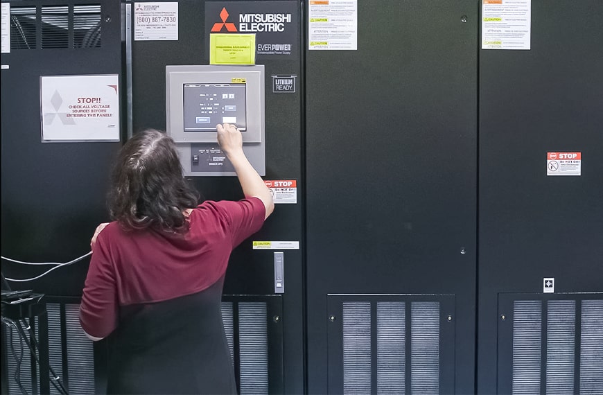 Power outages are a serious risk for data centers. If a data center loses power, not only are web services, applications, and business systems unavailable, but the IT servers themselves may be lost. Mitsubishi Electric's UPS handles this risk with high uptime and reliable robustness to ensure customers' computing services from momentary voltage drops and unexpected power outages. Because of its small size, it can be installed in any location, even with peripheral equipment, while it is even designed to reduce costs. In addition, the UPS is environmentally friendly due to its superior power efficiency.