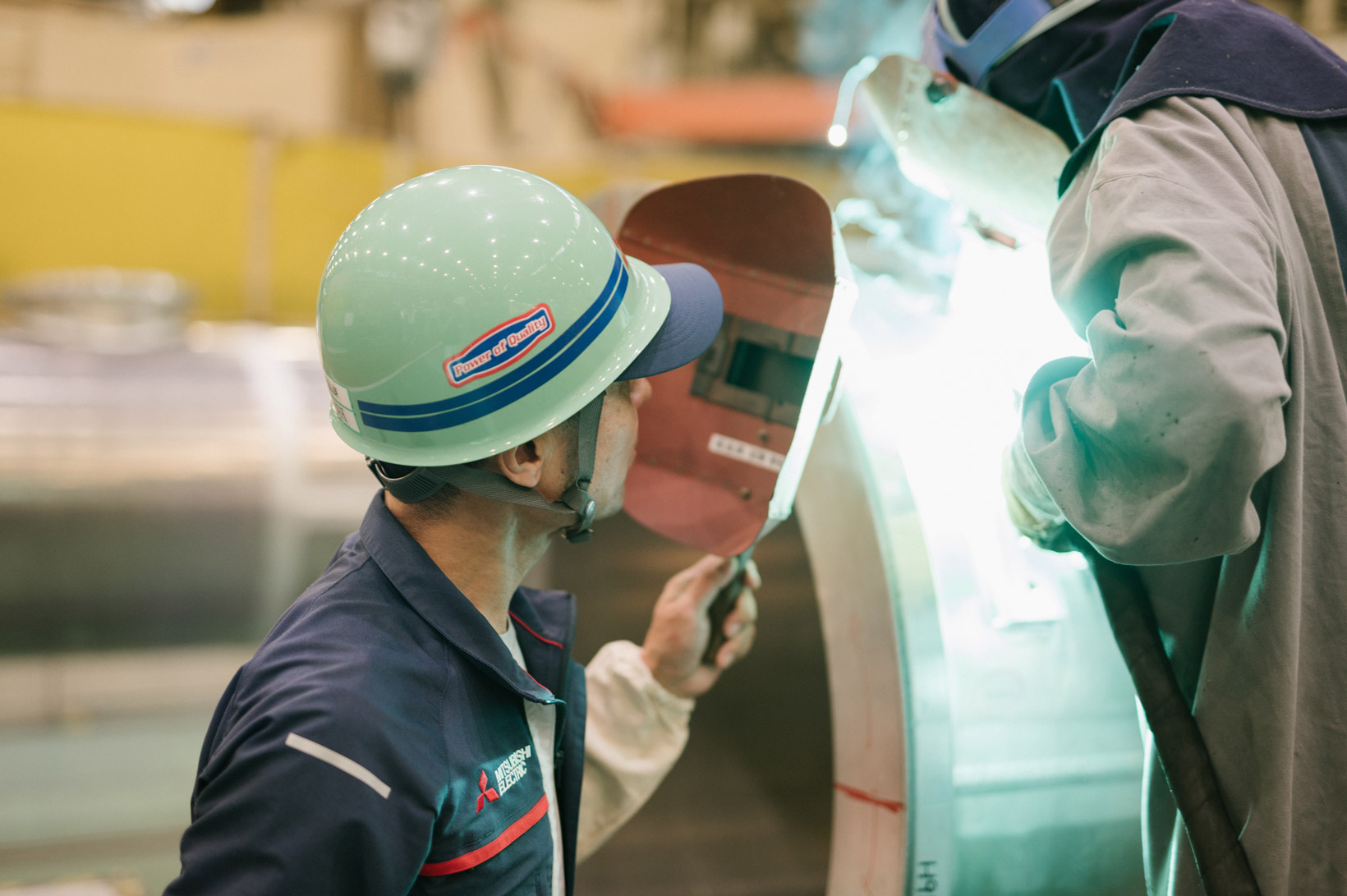 The fortunate introduction to welding, which he loves, right after joining Mitsubishi Electric.
