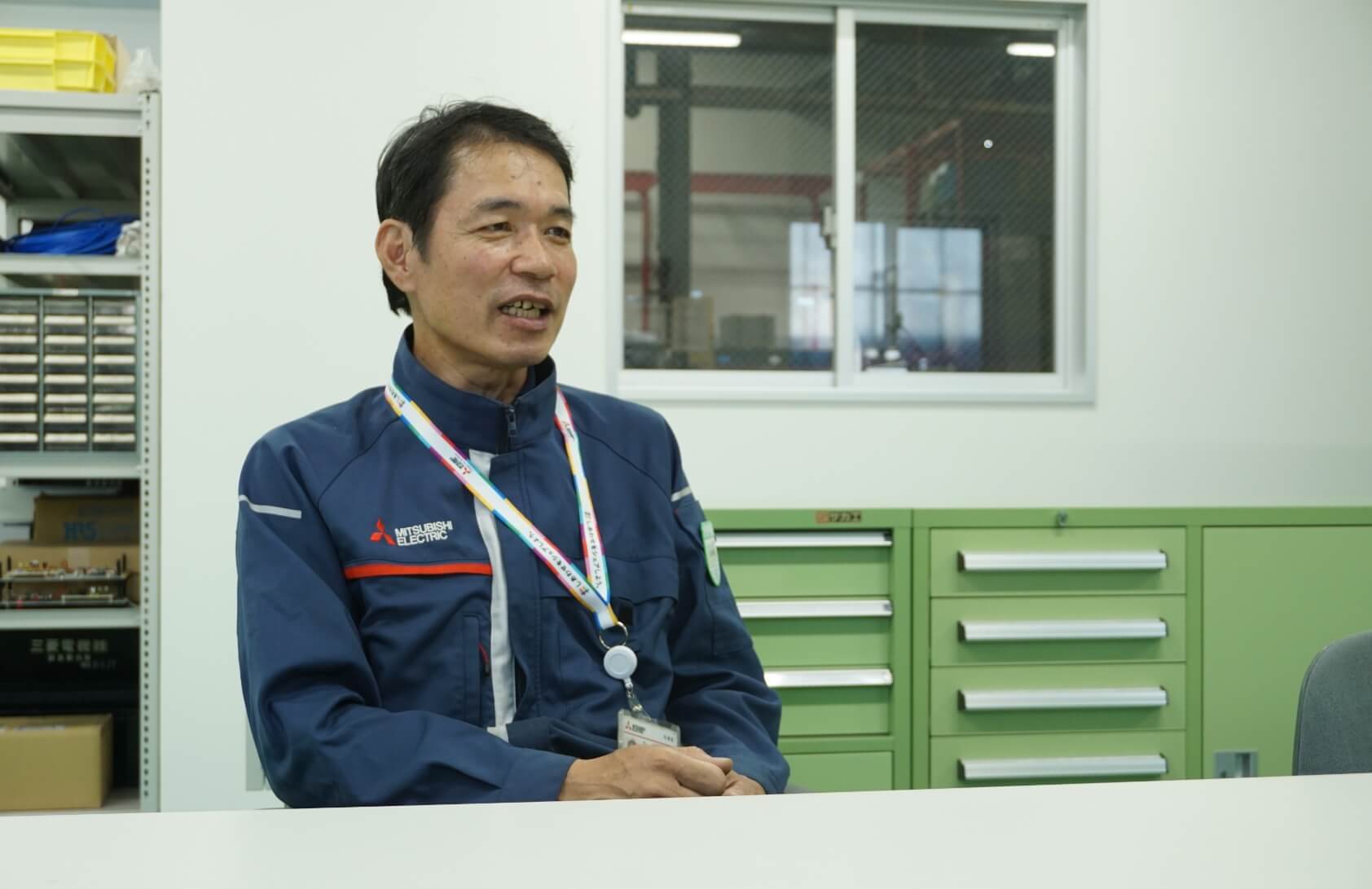 “I miss the days when I used to think that Mitsubishi Electric was a big organization, and the chance to play an active role looked almost impossible. Now that I have worked for the company for many years, I have come to realize how contributing Mitsubishi Electric is to the world. There is something I always say to young trainees when I meet them for the first time: ‘I have been in this company for 42 years. At first, I probably felt the same way as you do. But after working here for so many years, you will realize even more that Mitsubishi Electric is a great place to work, so you should look forward to it.’ Then, everyone's face changes and they start taking work more seriously.”