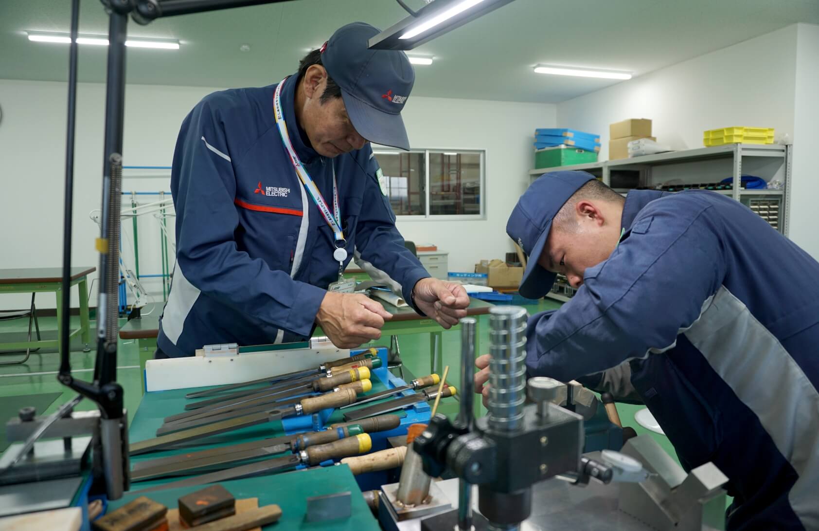 Mr. Matsuzaki teaches his student, Mr. Tamura (right).