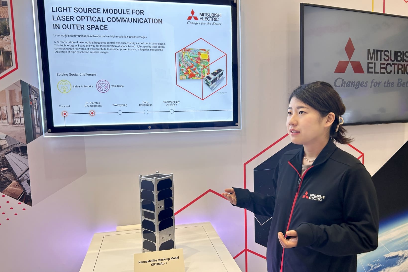 Ms. Konaka, a fluent English speaker, explains her project at the Mitsubishi Electric booth at CES2024, one of the world’s largest tech events
