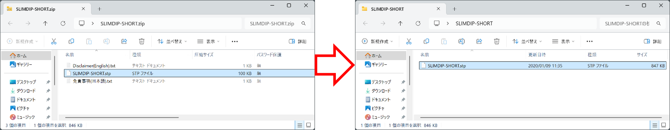 ・Place "SLIMDIP-SHORT.stp" from "SLIMDIP-SHORT.zip" into a newly created appropriate folder.
